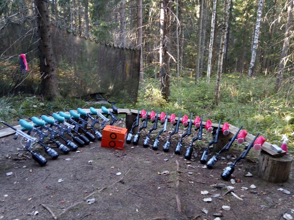 - Hinnat sis. kaikki varusteet, 500 värikuulaa, pelialueen, taukopaikan ja ohjauksen sekä alv:n.